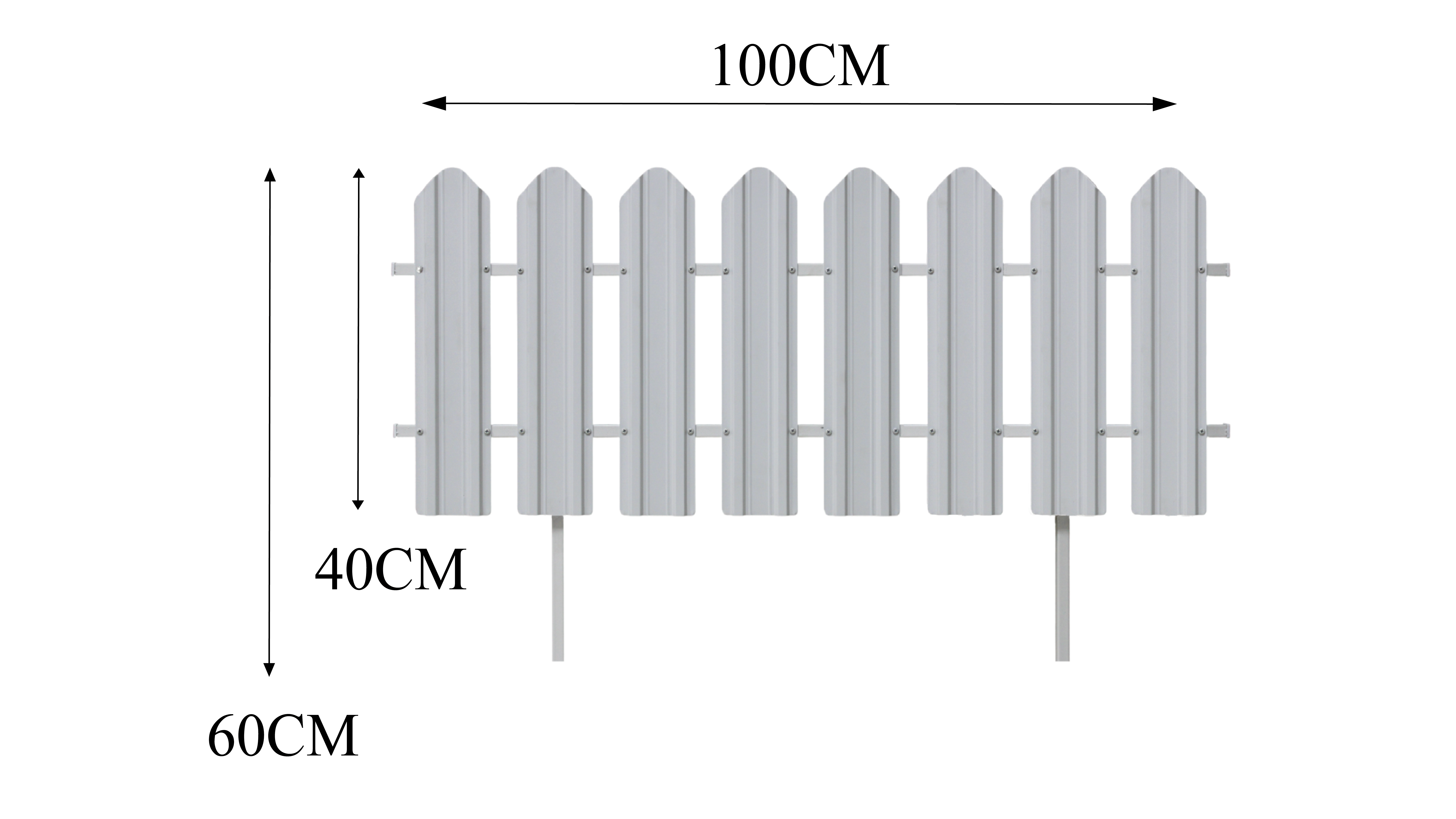 Mini Fence’ler RAL 9002 galvanizli boyalı sacdan üretilmiştir. 100 cm genişliğinde RAL 9002 boyalı kutu profil ve 8 adet 40 cm yüksekliğinde montajlı halde teslim edilmektedir.
